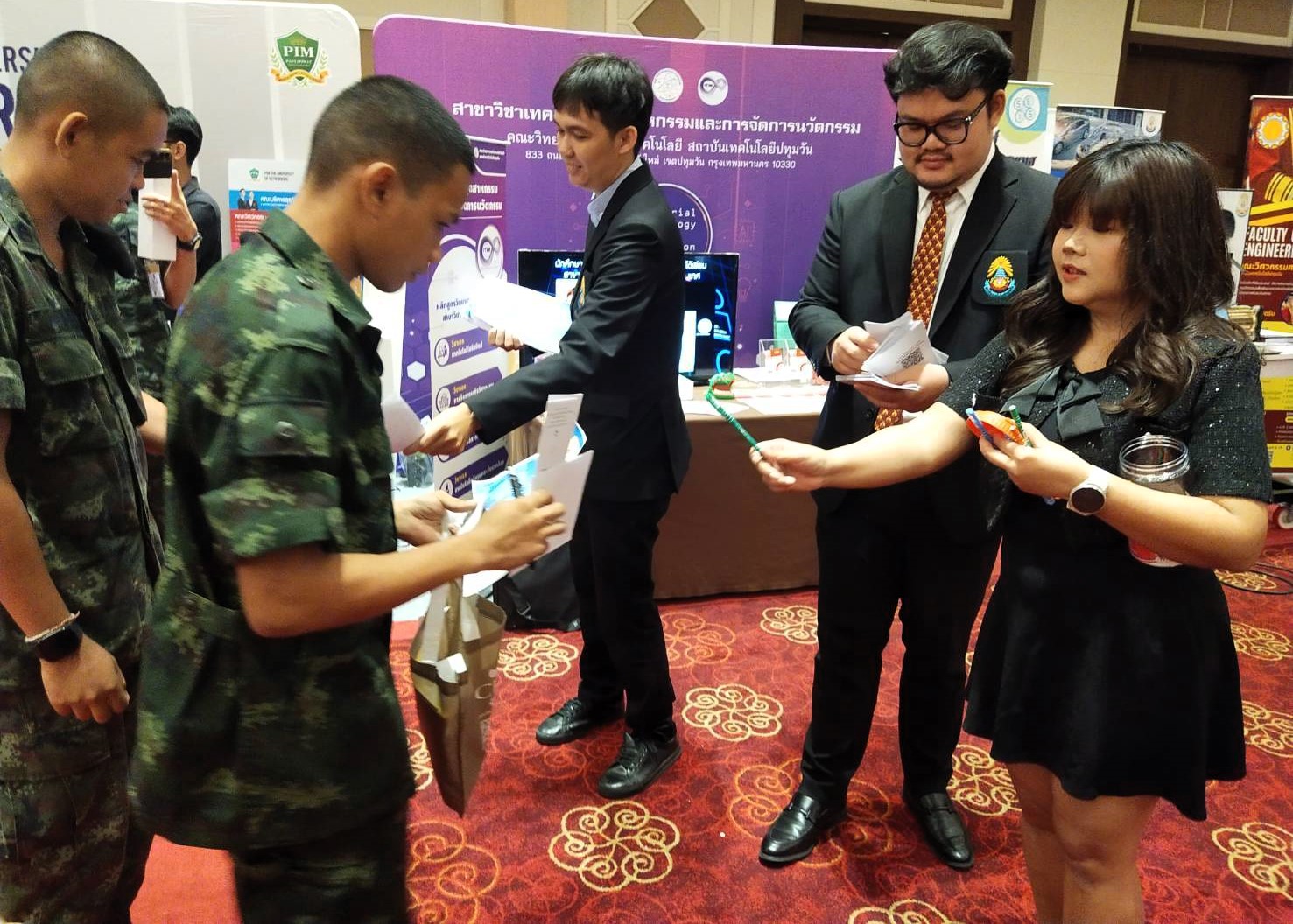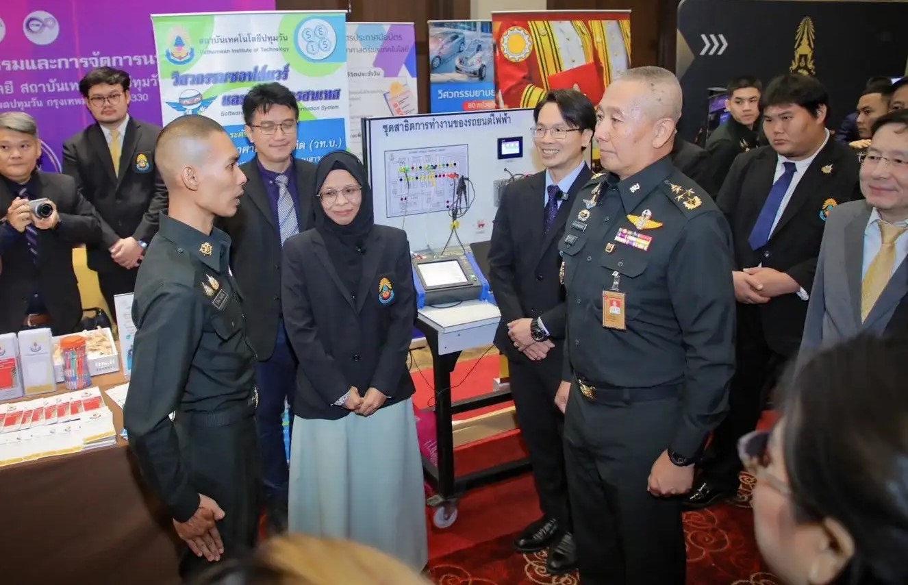 วันที่ 20 – 21 มีนาคม พ.ศ. 2568 ณ สโมสรทหารบก (วิภาวดี) กรุงเทพมหานคร รองศาสตราจารย์ ดร.เสถียร ธัญญศรีรัตน์ อธิการบดีสถาบันเทคโนโลยีปทุมวัน อาจารย์ จิตรภรณ์ นางทิน รองอธิการบดี ผู้ช่วยศาสตราจารย์ ดร.วชิราภรณ์ เพิ่มพูนสินทรัพย์ คณบดีคณะวิทยาศาสตร์และเทคโนโลยี ผู้ช่วยศาสตราจารย์ ดร.ประสิทธิ์ นางทิน คณบดีคณะวิศวกรรมศาสตร์ พร้อมด้วย คณะผู้บริหารและคณาจารย์จากทั้งสองคณะ ร่วมเป็นเกียรติในงานนิทรรศการแนะแนวการศึกษา และการประกอบอาชีพให้แก่กำลังพลและครอบครัว ประจำปีการศึกษา 2568 โดยคณะวิทยาศาสตร์และเทคโนโลยี และคณะวิศวกรรมศาสตร์สถาบันเทคโนโลยีปทุมวัน ยังร่วมเปิดบูธประชาสัมพันธ์หลักสูตรภายในงาน เพื่อขยายโอกาสและเสริมสร้างการรับรู้ทางการศึกษาและการประกอบอาชีพให้แก่ทหารกองประจำการ รวมถึงกำลังพลของ ทบ. และครอบครัว