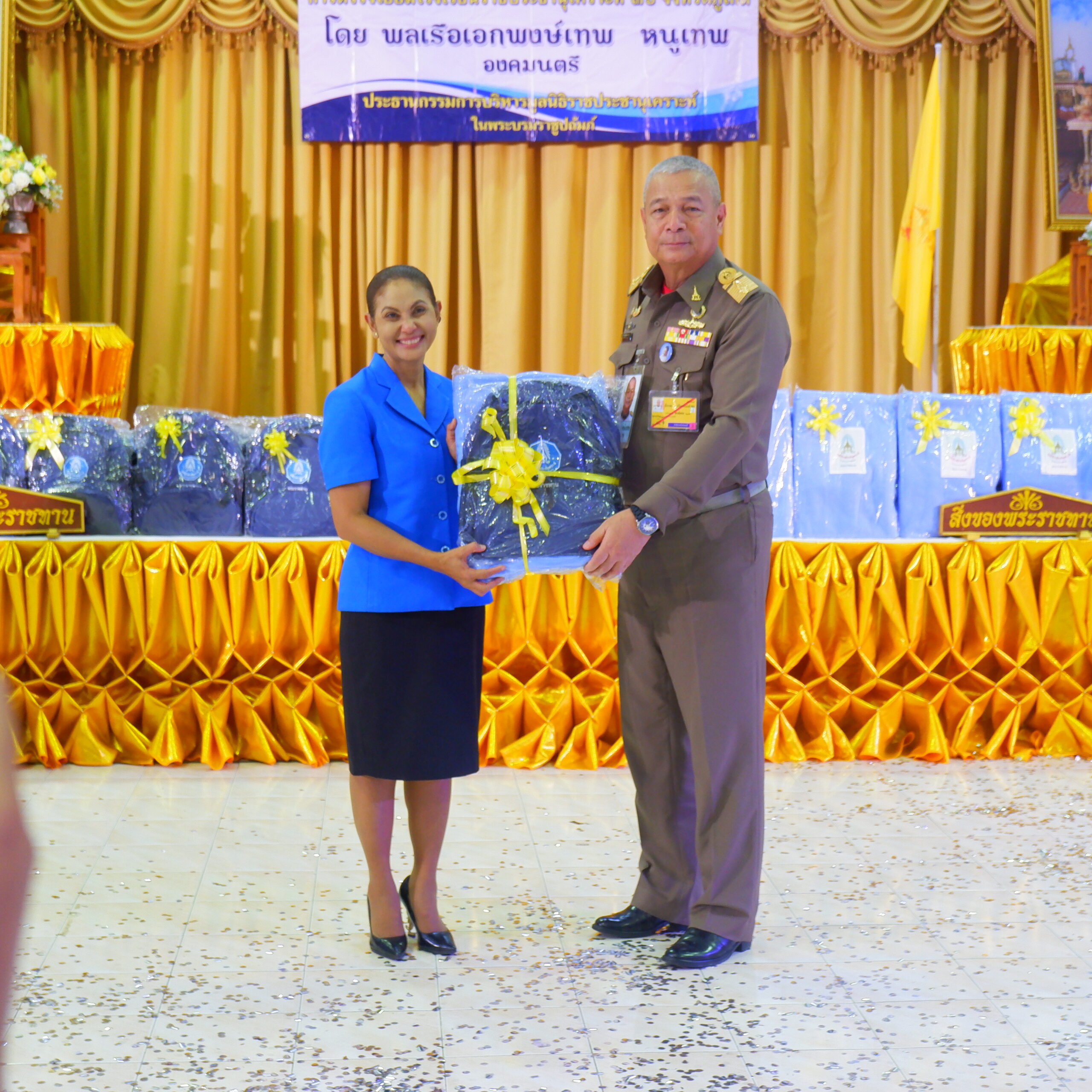 โอกาสนี้พระบาทสมเด็จพระเจ้าอยู่หัวสมเด็จ และสมเด็จพระนางเจ้าพระบรมราชินี ทรงพระกรุณาโปรดเกล้าโปรดกระหม่อม ให้องคมนตรี และคณะ เชิญสิ่งของพระราชทานไปมอบให้แก่นักเรียน