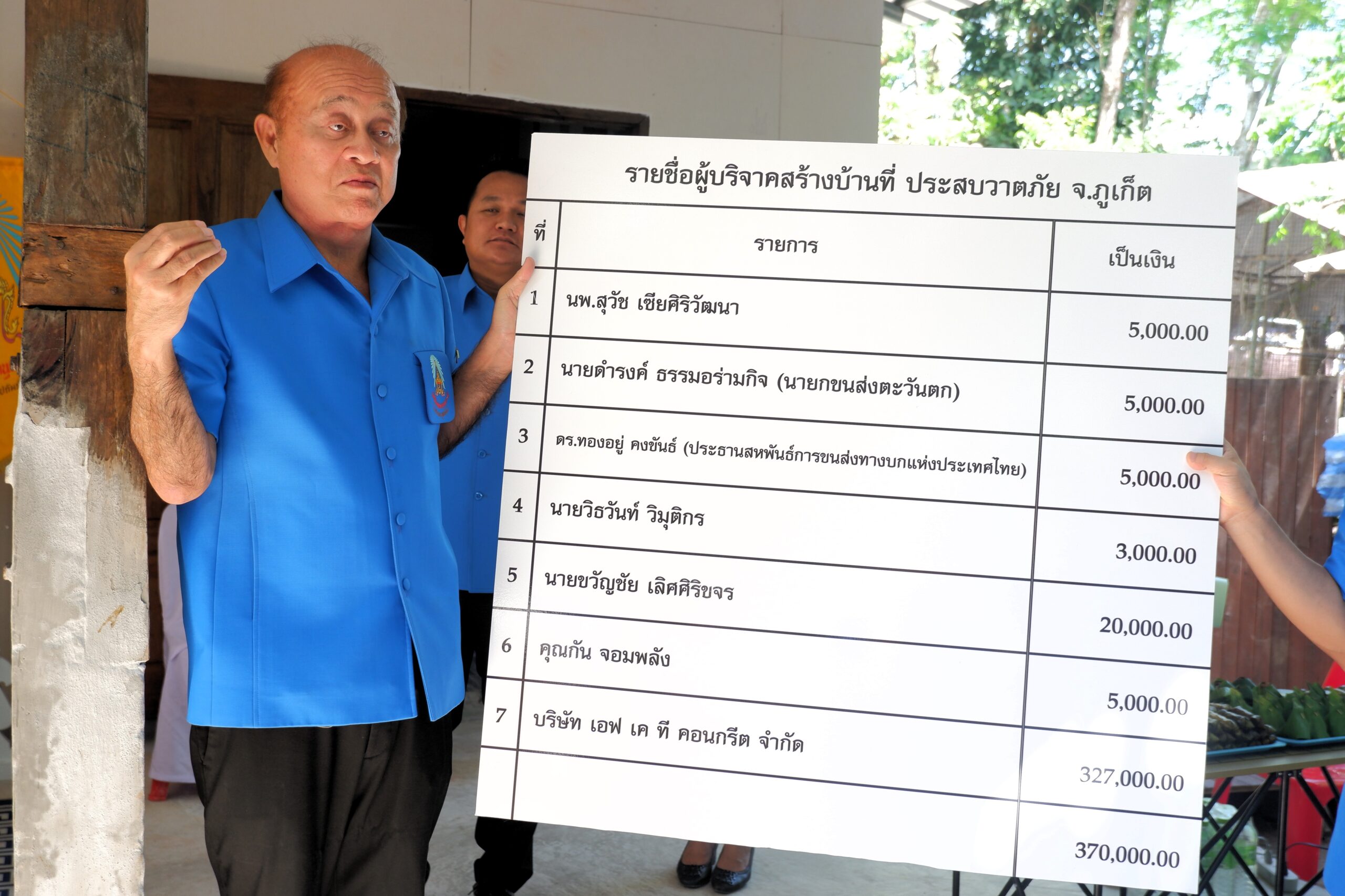 จากนั้น เดินทางไปยังบ้านเลขที่ 157 หมู่ที่ 6 ตำบลปากคอก อำเภอถลาง เพื่อเป็นประธานในพิธีมอบบ้านจากผู้สนับสนุนจากมูลนิธิราชประชานุเคราะห์แก่ครอบครัวนายณัฐวัฒน์ และเด็กหญิงณัฐชา มิตรสหาย นักเรียนโรงเรียนราชประชานุเคราะห์ 36 จังหวัดภูเก็ต ได้รับผลกระทบจากเหตุวาตภัย เมื่อวันที่ 8 กันยายน พ.ศ. 2568
