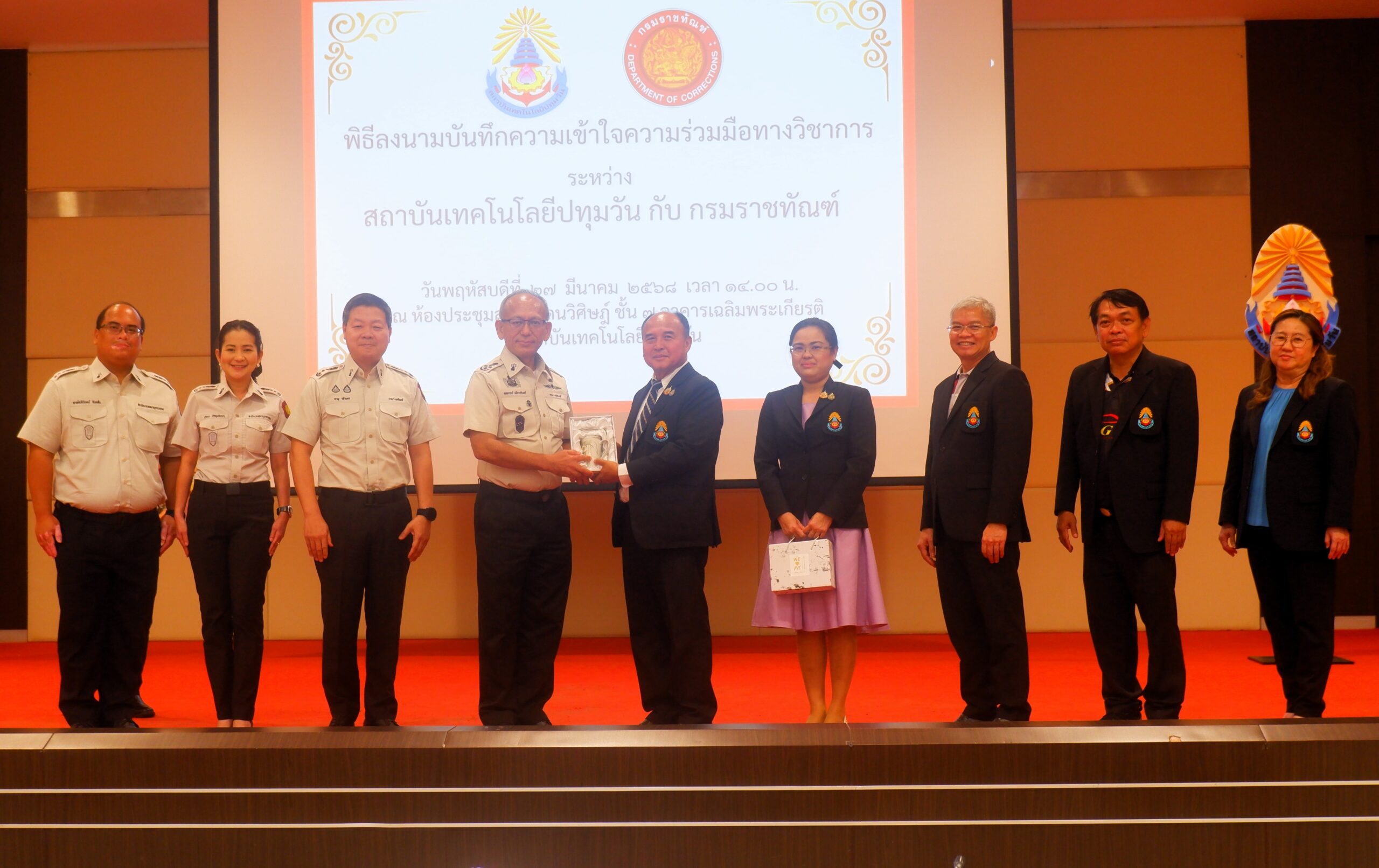 วันพฤหัสบดีที่ 27 มีนาคม พ.ศ. 2568 ณ ห้องประชุมสวัสดิวัดนวิศิษฎ์ ชั้น 7 อาคารเฉลิมพระเกียรติ สถาบันเทคโนโลยีปทุมวัน โดย รองศาสตราจารย์ ดร.เสถียร ธัญญศรีรัตน์ อธิการบดี สถาบันเทคโนโลยีปทุมวัน ผู้ช่วยศาสตราจารย์ วีนัส ทัดเนียม รองอธิการบดี อาจารย์จิตรภรณ์ นางทิน รองอธิการบดี ผู้ช่วยศาสตราจารย์ ดร.วชิราภรณ์ เพิ่มพูนสินทรัพย์ คณบดีคณะวิทยาศาสตร์และเทคโนโลยี ผู้ช่วยศาสตราจารย์ ดร.ประสิทธิ์ นางทิน คณบดีคณะวิศวกรรมศาสตร์ พร้อมด้วยคณะผู้บริหาร คณาจารย์และบุคลากร สถาบันเทคโนโลยีปทุมวัน ให้การต้อนรับ นายสหการณ์ เพ็ชรนรินทร์ อธิบดีกรมราชทัณฑ์ นายชาญ วชิรเดช รองอธิบดีกรมราชทัณฑ์ พร้อมคณะ ในพิธีลงนามบันทึกความเข้าใจความร่วมมือทางวิชาการ ระหว่าง สถาบันเทคโนโลยีปทุมวัน กับ กรมราชทัณฑ์