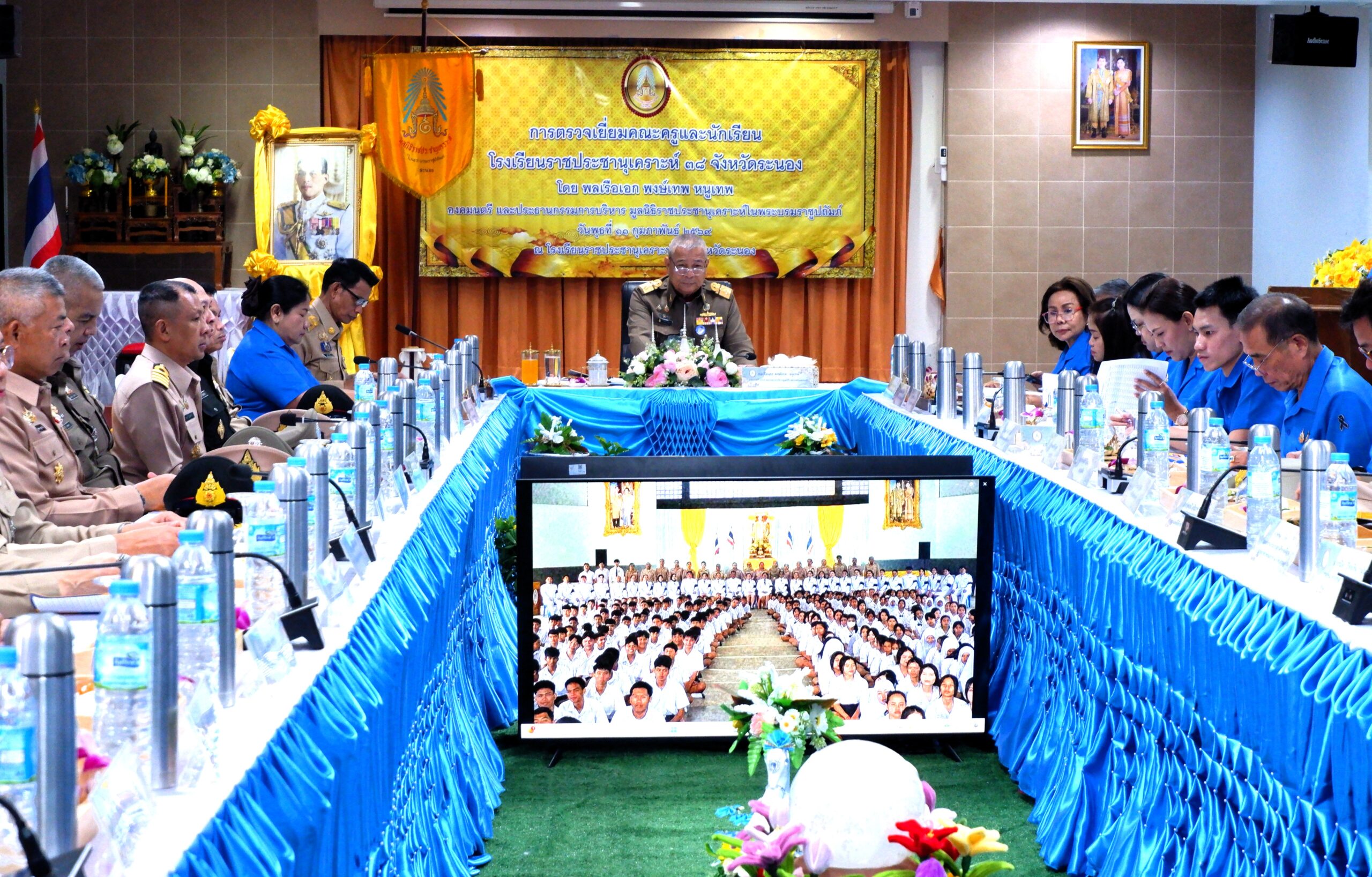 วันพุธที่ 11 กุมภาพันธ์ พ.ศ. 2569 พลเรือเอก พงษ์เทพ หนูเทพ องคมนตรี ในฐานะประธานกรรมการบริหารมูลนิธิราชประชานุเคราะห์ ในพระบรมราชูปถัมภ์ พร้อมคณะ เดินทางตรวจเยี่ยม และติดตามผลการดำเนินงานของโรงเรียนราชประชานุเคราะห์ 38 อำเภอเมือง จังหวัดระนอง