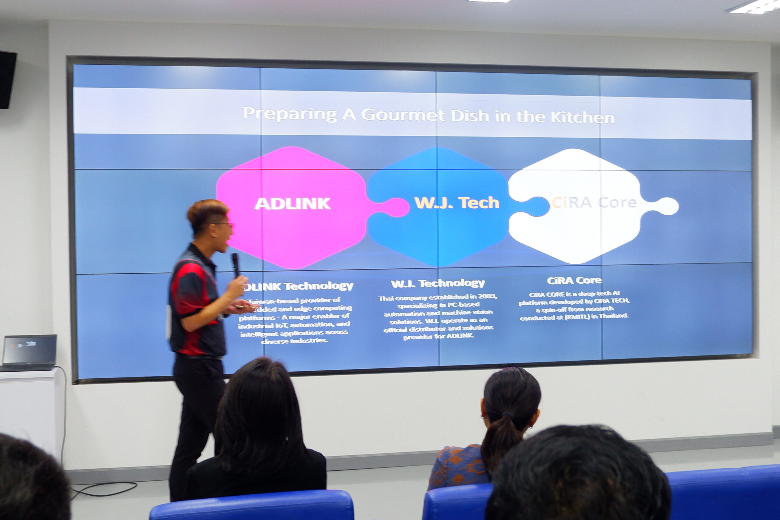 สำหรับงานสัมมนา “The Future of Smart Industry AIoT and the Next Industrial Revolution” จัดขึ้นเพื่ออนาคตในยุคที่เทคโนโลยีก้าวกระโดด การรวมอุตสาหกรรม Industrial Integration กลายเป็นหัวใจสำคัญในการเพิ่มประสิทธิภาพการผลิตการจัดการโครงสร้างพื้นฐาน อีกทั้งการประยุกต์ใช้เทคโนโลยี AIoT ในอุตสาหกรรม สามารถช่วยให้การดำเนินงานมีความยืดหยุ่นและปรับตัวได้ดีขึ้น การรวมกันของ AI และ IoT จะช่วยให้ระบบสามารถเรียนรู้และปรับปรุงตัวเองได้อย่างต่อเนื่อง รวมถึงการประยุกต์ใช้งาน AI Vision ด้วย CiRA CORE และ โซลูชันจาก ADLINK เป็นอีกหนึ่งก้าวสำคัญในการพัฒนาระบบการตรวจสอบ รวมทั้งการใช้ AI ในการประมวลผลโดยสามารถตรวจสอบข้อบกพร่องและควบคุมคุณภาพสินค้าได้อย่างมีประสิทธิภาพมากขึ้น