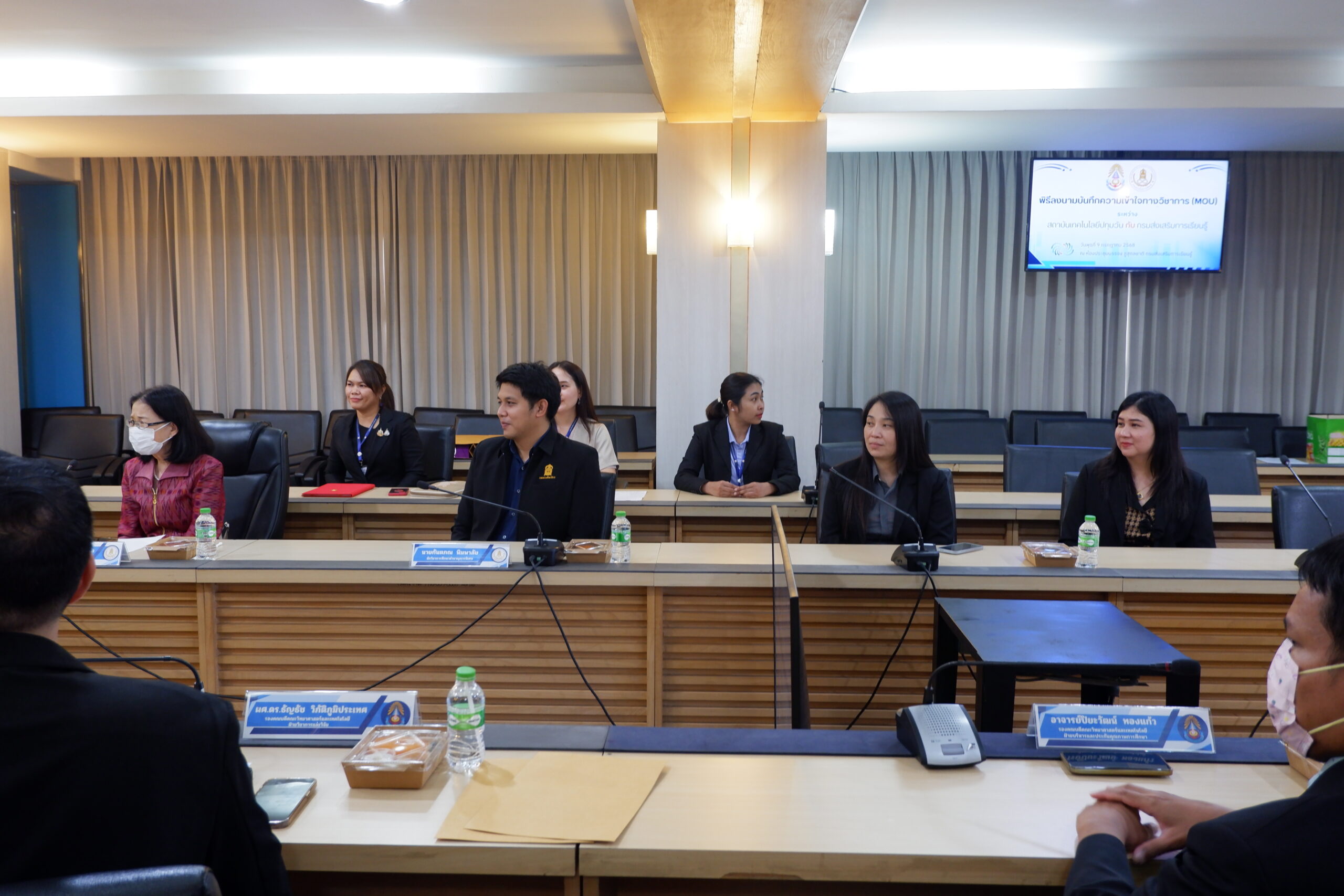 วันพุธที่ 9 กรกฏาคม พ.ศ. 2568 รองศาสตราจารย์ ดร.เสถียร ธัญญศรีรัตน์ อธิการบดีสถาบันเทคโนโลยีปทุมวัน ผู้ช่วยศาสตราจารย์ ดร.วชิราภรณ์ เพิ่มพูนสินทรัพย์ คณบดีคณะวิทยาศาสตร์และเทคโนโลยี พร้อมคณะผู้บริหารจากคณะวิทยาศาสตร์และเทคโนโลยี ร่วมพิธีลงนามบันทึกความเข้าใจทางวิชาการ (MOU) กับกรมส่งเสริมการเรียนรู้ โดย นายธนากร ดอนเหนือ อธิบดีกรมส่งเสริมการเรียนรู้ มอบหมายให้ นายชัยวัฒน์ พันธุ์วัฒนสกุล รองอธิบดีกรมส่งเสริมการเรียนรู้ พร้อมด้วยนางพรรณทิพา ชินชัชวาล ที่ปรึกษาด้านพัฒนาคุณภาพงานวิชาการ กรมส่งเสริมการเรียนรู้ ให้การต้อนรับ ณ กรมส่งเสริมการเรียนรู้