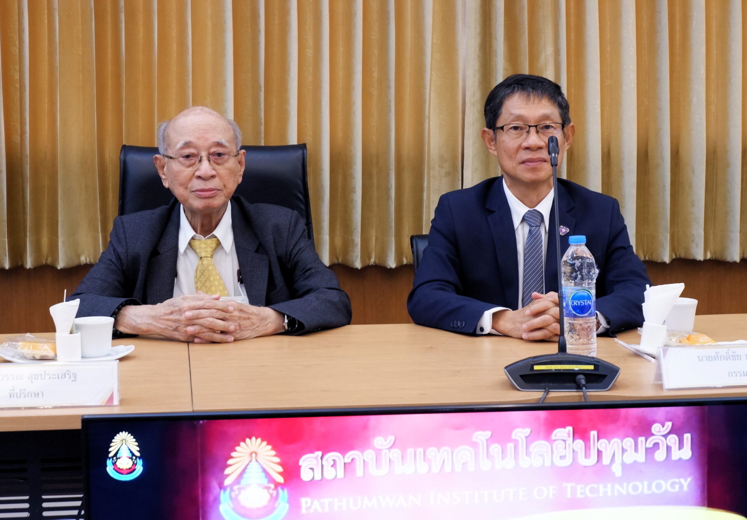 เมื่อวันศุกร์ที่ 23 พฤษภาคม พ.ศ. 2568 ผู้ช่วยศาสตราจารย์ ดร.วชิราภรณ์ เพิ่มพูนสินทรัพย์ คณบดีคณะวิทยาศาสตร์และเทคโนโลยี สถาบันเทคโนโลยีปทุมวัน พร้อมด้วย รองศาสตราจารย์ ดร.สันติ หวังนิพพานโต ผู้อำนวยการศูนย์ภาษาและคอมพิวเตอร์ พร้อมด้วยคณะผู้บริหาร คณาจารย์และเจ้าหน้าที่สถาบันเทคโนโลยีปทุมวัน ให้การต้อนรับ นายประสพชัย ยุวะเวส นายกสมาคมส่งเสริมความปลอดภัยและอนามัยในการทำงาน (ประเทศไทย) ในพระราชูปถัมภ์ ฯ พร้อมคณะ เข้าร่วมพิธีลงนามบันทึกความเข้าใจทางวิชาการ (MOU) ณ ห้องประชุมประดู่บาน 1 ชั้น 3 อาคารเฉลิมพระเกียรติ สถาบันเทคโนโลยีปทุมวัน