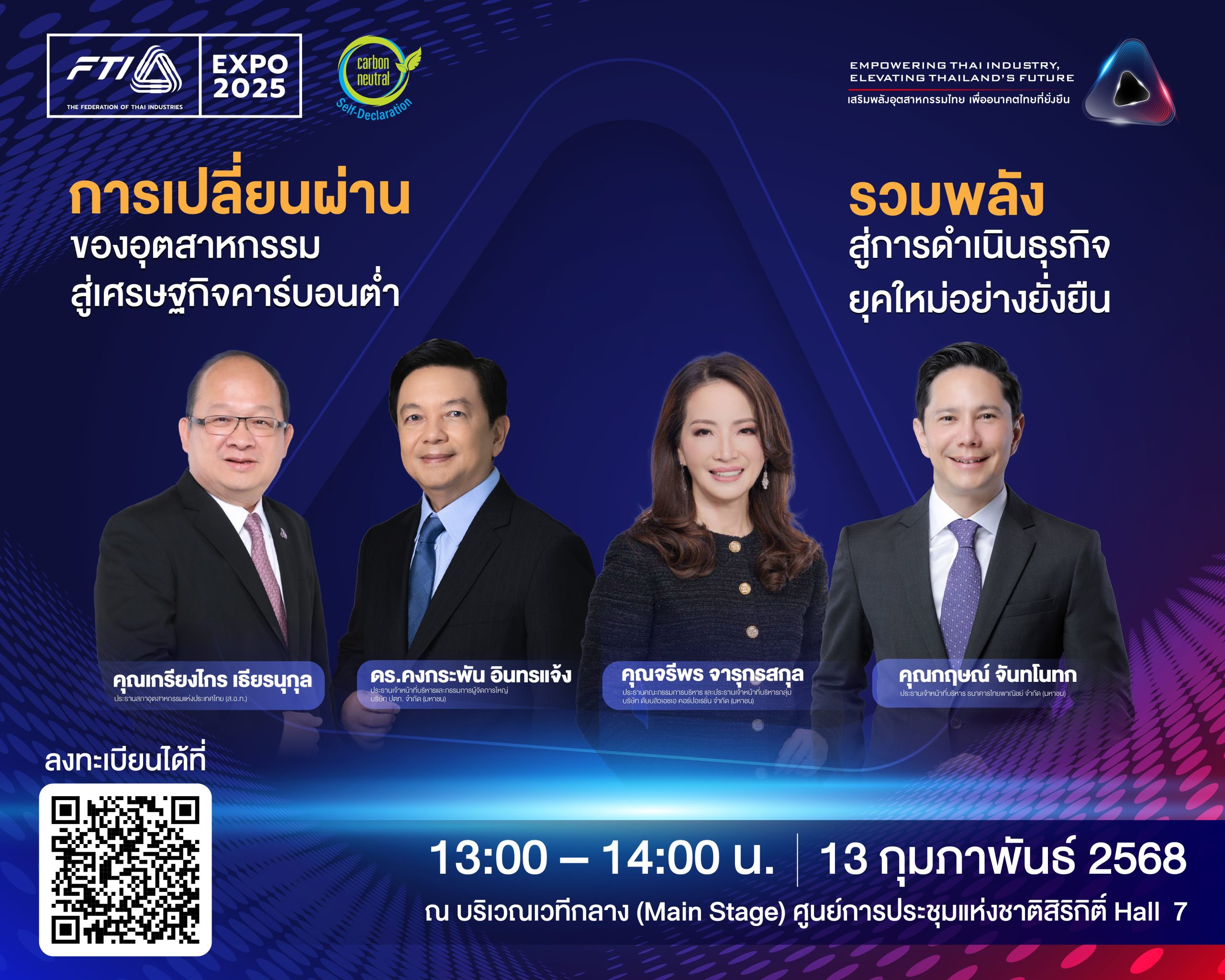 วันพฤหัสบดีที่ 13 กุมภาพันธ์ พ.ศ. 2568 ผู้ช่วยศาสตราจารย์ ดร.วชิราภรณ์ เพิ่มพูนสินทรัพย์ คณบดีคณะวิทยาศาสตร์และเทคโนโลยี สถาบันเทคโนโลยีปทุมวัน พร้อมด้วยผู้บริหาร และคณาจารย์สาขาวิชาเทคโนโลยีอุตสาหกรรมและการจัดการนวัตกรรม ได้เดินทางร่วมเป็นเกียรติในงาน FTI EXPO 2025 มหกรรมรวมพลังขับเคลื่อนไทยสู่อุตสาหกรรมแห่งอนาคต โดยเป็นงานที่จัดขึ้นโดยสภาอุตสาหกรรมแห่งประเทศไทย ณ ศูนย์ประชุมแห่งชาติสิริกิติ์ ฮอล 5-8 เป็นงานสำคัญที่รวมพลังในทุกภาคส่วนเพื่อร่วมสร้างอนาคตที่มั่นคงและยั่งยืนให้อุตสาหกรรมไทย ด้วยสภาพแวดล้อมที่ถูกรายล้อมไปด้วยเรื่องราวการพัฒนาอุตสาหกรรมไทยในทุกมิติ และการเป็นส่วนหนึ่งกับการพัฒนาอุตสาหกรรมไทย ผ่านประสบการณ์ที่สมจริง พร้อมสัมผัสกับนวัตกรรมที่ล้ำสมัย และแนวโน้มของอุตสาหกรรมแห่งอนาคต พร้อมทั้งยังจุดประกายและเสริมพลัง SMEs ไทย ให้เติบโตอย่างยั่งยืน กับการเสริมทักษะทางธุรกิจกับผู้มากประสบการณ์ ที่มาแบ่งปันความรู้และแนวทางเพื่อช่วยผู้ประกอบการพัฒนาธุรกิจให้ก้าวหน้า